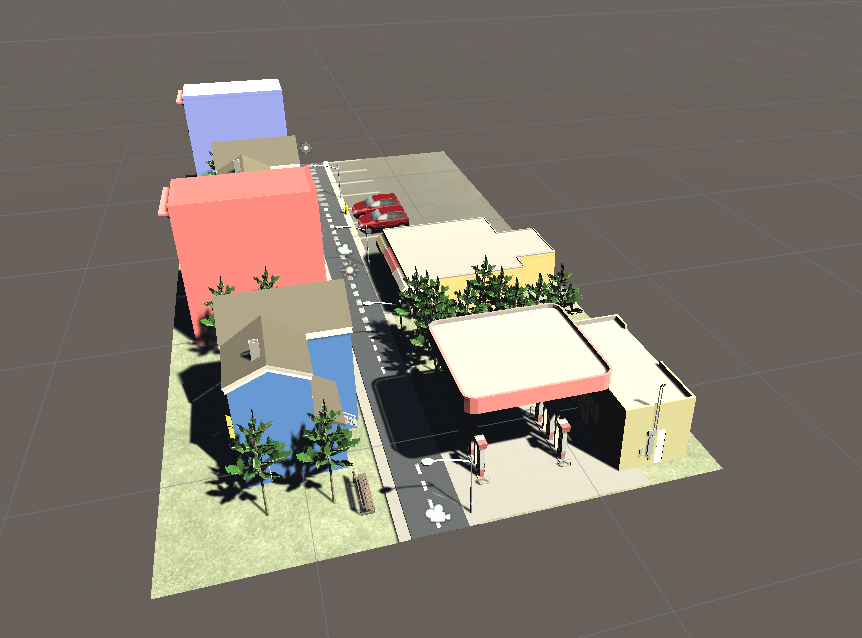 This second picture is what I thought would’ve been my final project, but the colors were looking a bit weird. I changed a couple things like light intensity and the color schemes, so that it was all easier to look at. I also fixed some of the buildings up by adding blocks inside of them so that the user wouldn’t actually be able to walk through the buildings and cars. Once I put this all together this is what my final map ended up looking like.
